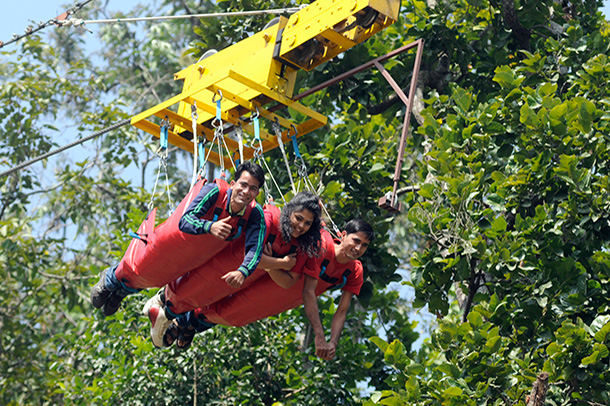 • Three persons may move simultaneously on this flying fox in Rishikesh. For an additional fee, you may also go it alone.